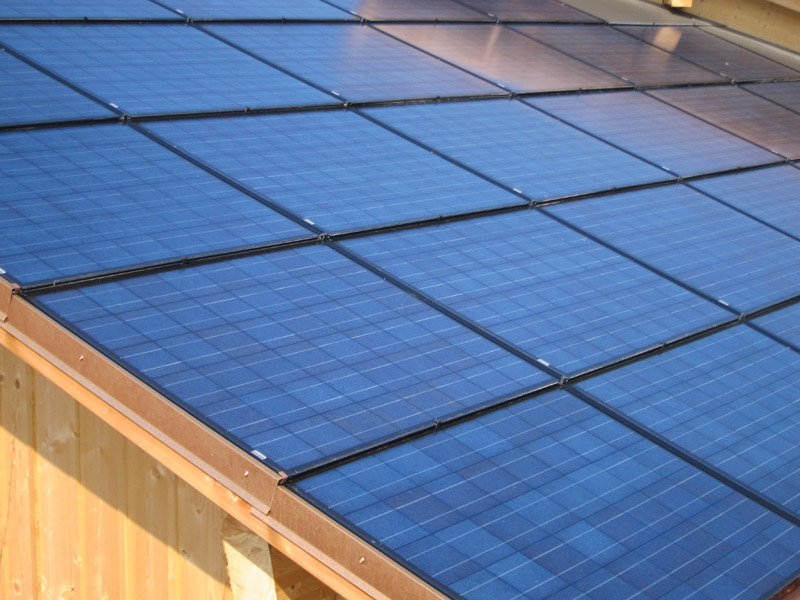 Die Photovoltaikanlage wandelt umweltfreundliche Sonnenenergie in Strom um. Dazu werden zwei Scheiben des Halbleiters Silizium mit bestimmten Stoffen ausgestattet: die eine mit Phosphor (n-Schicht), wodurch das Silizium negativ leitend wird, die andere mit Bor oder Indium (p-Schicht), wodurch ein positiv leitendes Material entsteht. Sobald Licht auf die Solarzelle der Photovoltaikanlage fällt, übertragen die Photonen ihre Energie auf Elektronen und lösen sie dadurch aus ihren Atomen. Somit entstehen freie Elektronen und Löcher. Durch den p-n Übergang sammeln sich die Elektronen in der n-Halbleiterschicht und die Löcher in der p-Halbleiterschicht. Wenn man jetzt den Stromkreis etwa mit einem kleinen Motor schliesst, fliesst Gleichstrom.